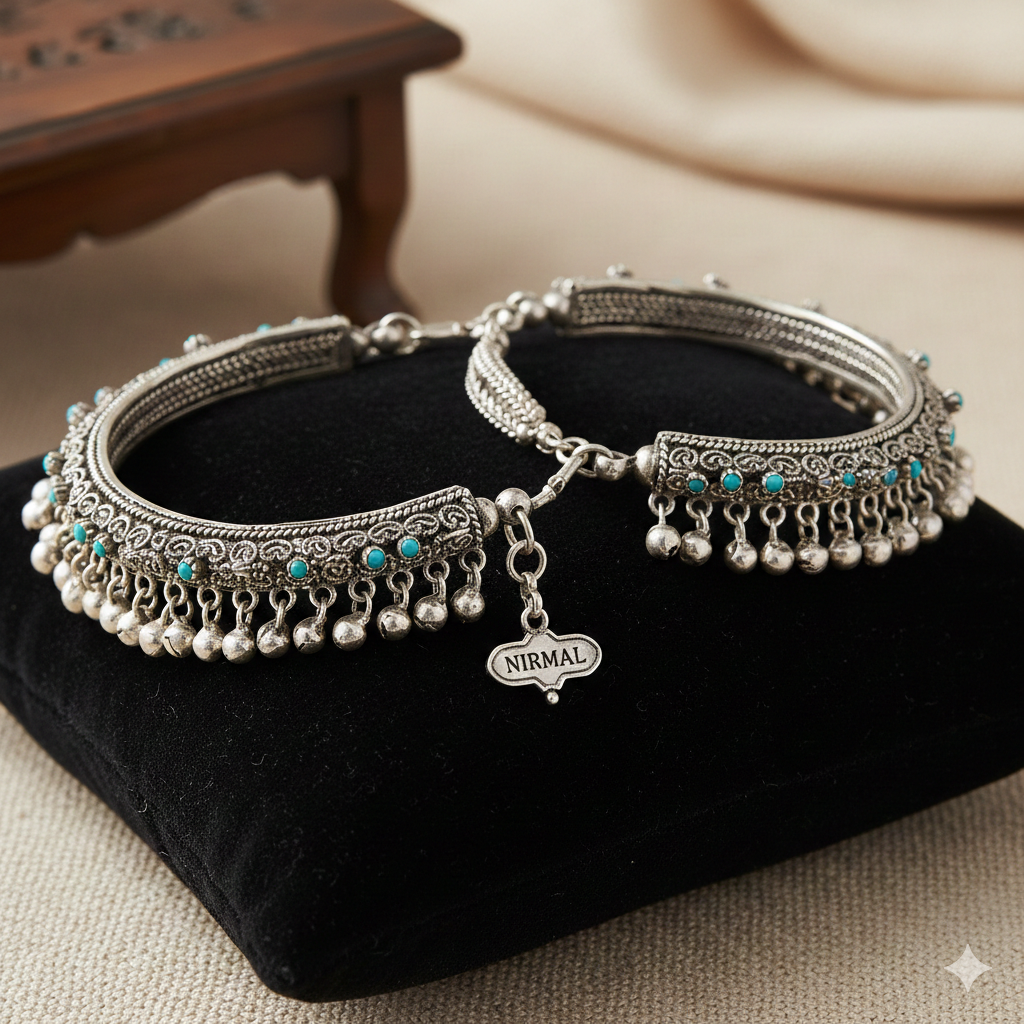 Silver Anklet Payal Set - 2 Pcs Traditional Indian Ghungroo Ankle Bracelets